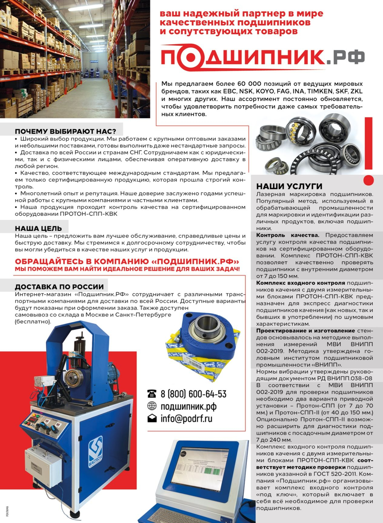Ключевое внимание в публикации уделено уникальному для рынка подходу к входному контролю. Редакция журнала подробно осветила работу нашего комплекса «ПРОТОН-СПП-КВК», который позволяет проводить экспресс-диагностику подшипников по шумовым характеристикам. Эта методика, основанная на стандартах головного института подшипниковой промышленности «ВНИПП», дает возможность отсеивать потенциальный брак еще на этапе поступления товара.